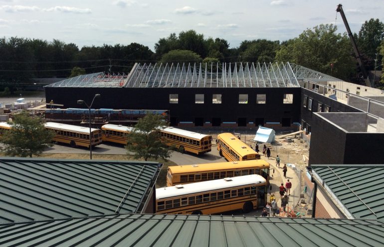 the majority of the work took place inside the school building, the project also included adding a turning lane on the main road, as